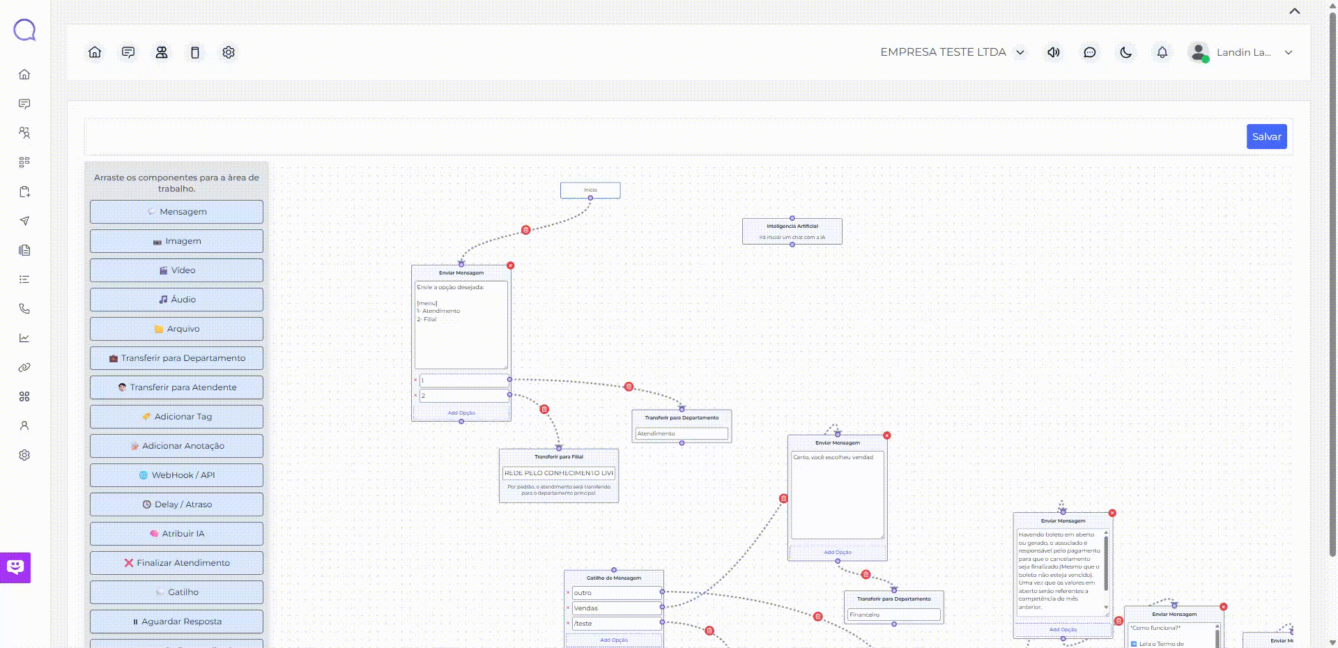 Crie jornadas completas de atendimento com a mesma facilidade de montar um quebra-cabeça — e veja sua operação fluir com eficiência máxima.