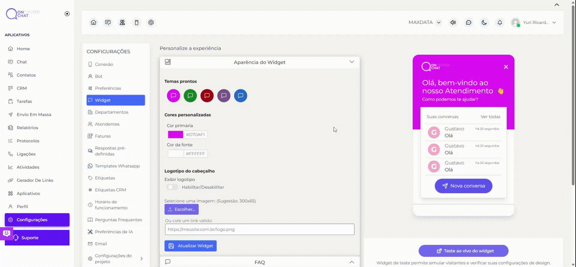 Deixe a Oncenter Chat do seu jeito — configure cada detalhe do atendimento para se adaptar à sua operação e à sua equipe.